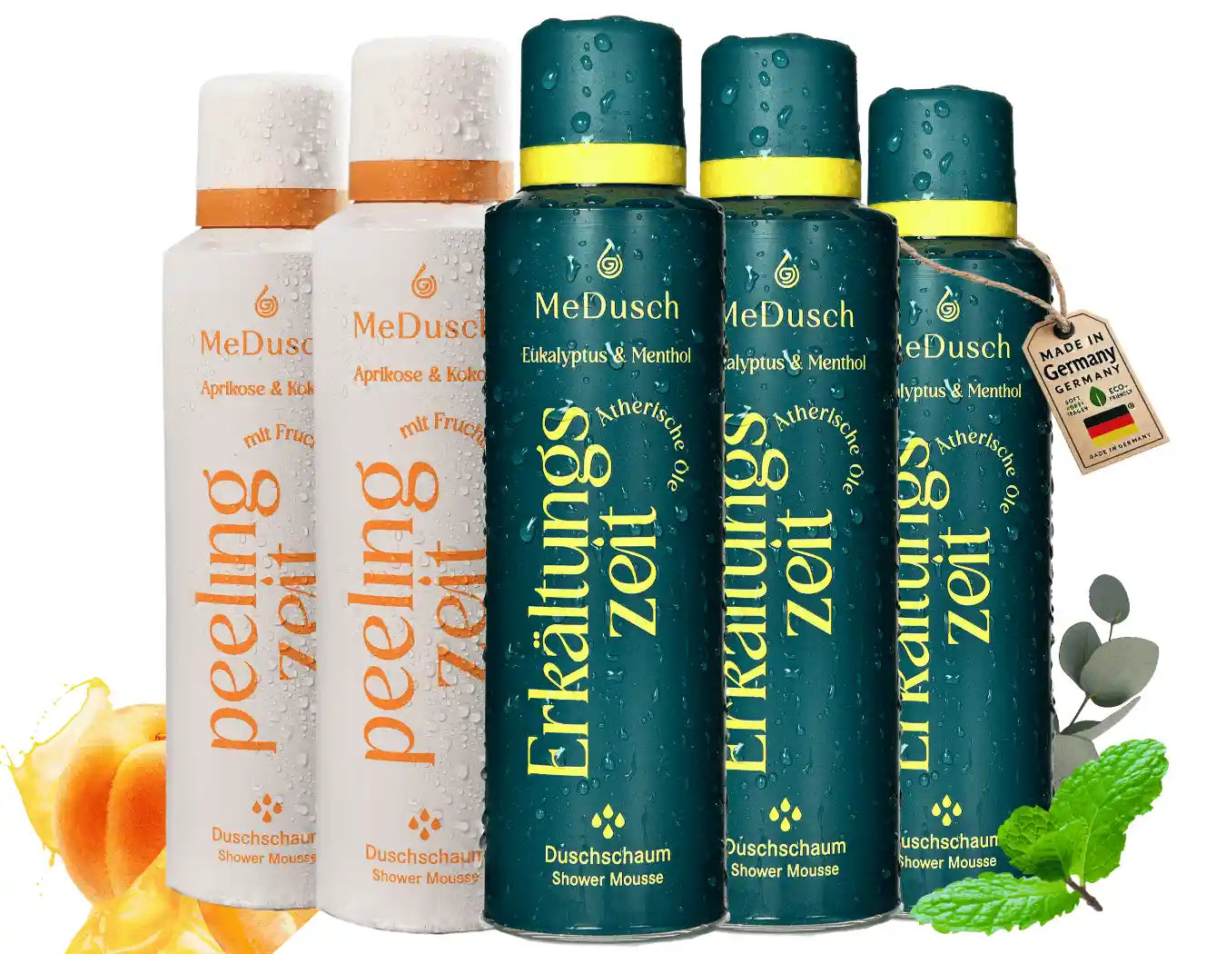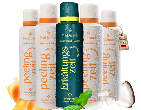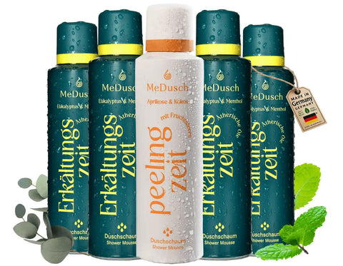 Mit Erkältungszeit kannst du unter Deiner Dusche inhalieren. Dazu sprühst du Dir eine kleine Menge Duschschaum in die Hände, legst sie vor Dein Gesicht und atmest mehrfach tief ein und aus. Mit dem Rest des Schaumes kannst du Dich wie gewohnt einseifen und abspülen.