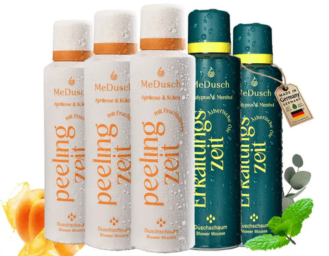 Mit Peelingzeit kannst Du Deine Hautoberfläche peelen, um die Zell-Erneuerung anzuregen und sie zu beschleunigen. Einfach Deinen Duschschaum auftragen, etwas einwirken lassen und wieder gründlich abspülen. Danach ist deine Haut nicht nur gereinigt, sondern auch wieder samtweich.