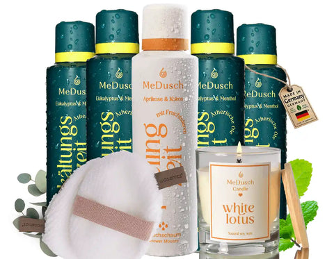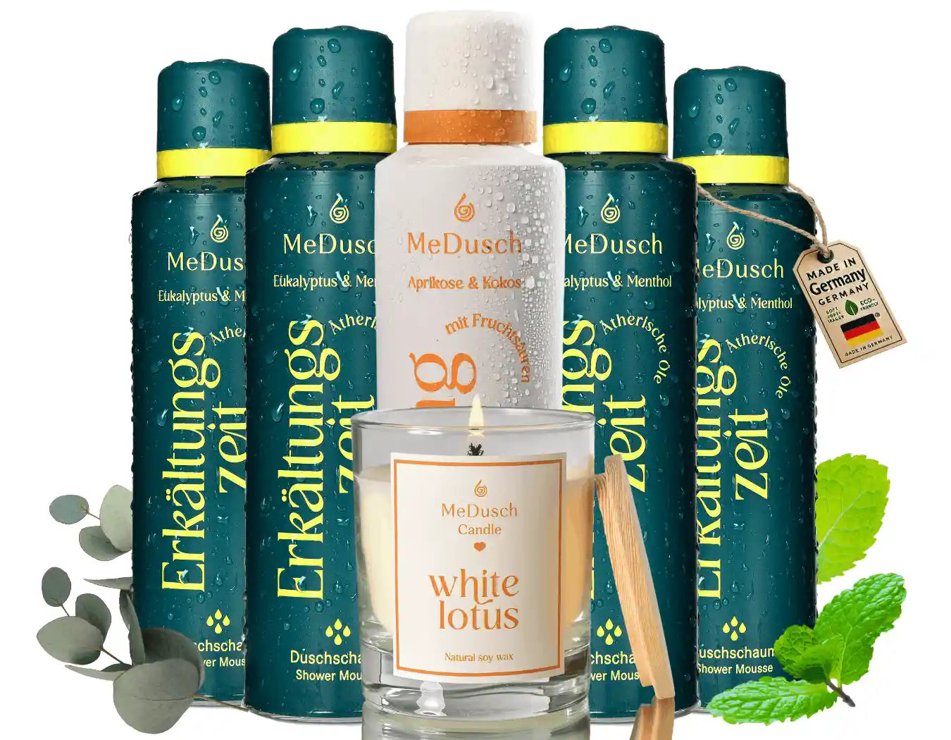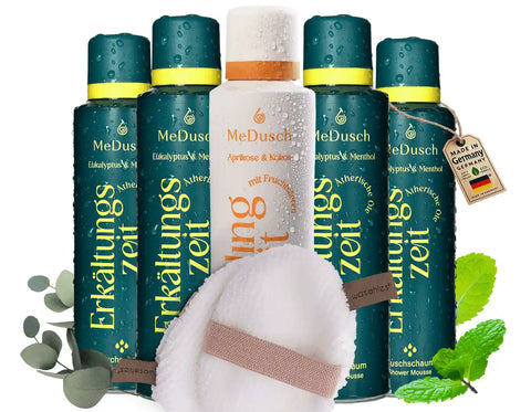 Mit Erkältungszeit kannst du unter Deiner Dusche inhalieren. Dazu sprühst du Dir eine kleine Menge Duschschaum in die Hände, legst sie vor Dein Gesicht und atmest mehrfach tief ein und aus. Mit dem Rest des Schaumes kannst du Dich wie gewohnt einseifen und abspülen.